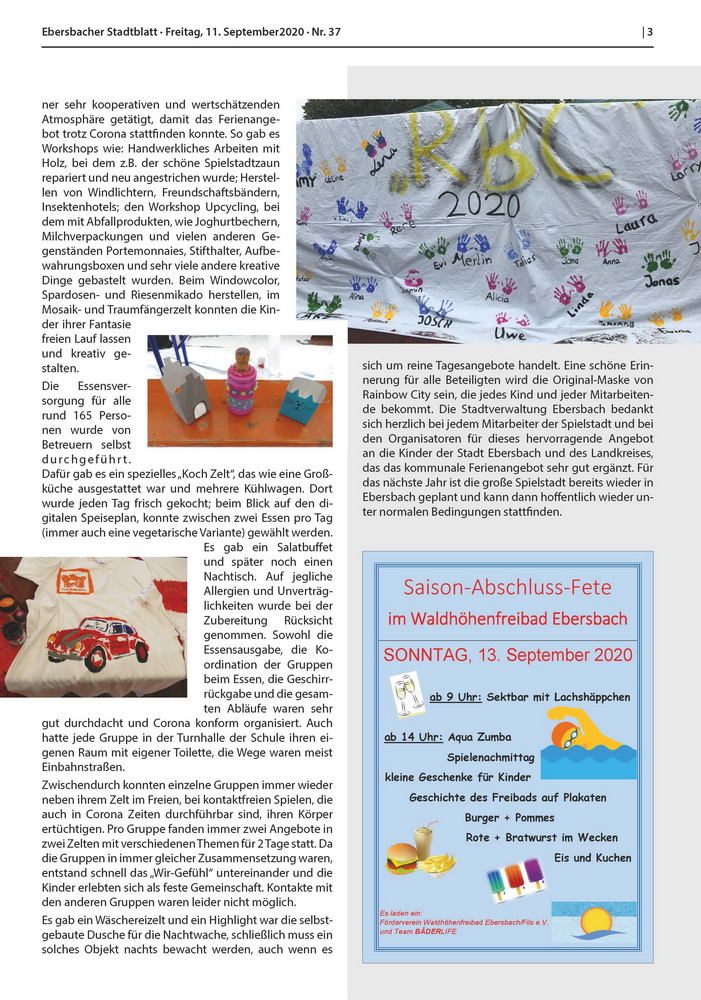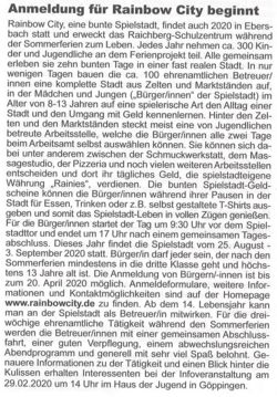 Rainbow City 2019 Auch in diesem Jahr unterstützt die Hohenstaufen-Loge finanziell die Ferienstadt |