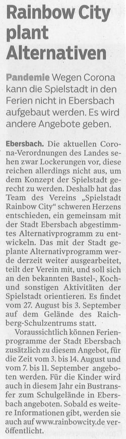 Auch in diesem Jahr unterstützt die Hohenstaufen-Loge finanziell „Rainbow City“. Zum 27. Mal verbringen Kinder und Jugendliche während der Sommerferien dort einige Ferientage. Aufgrund der Corona-Pandemie wurde das Konzept angepasst. Im Rahmen von Workshops und anderen Unternehmungen können sich die Jugendlichen engagieren.